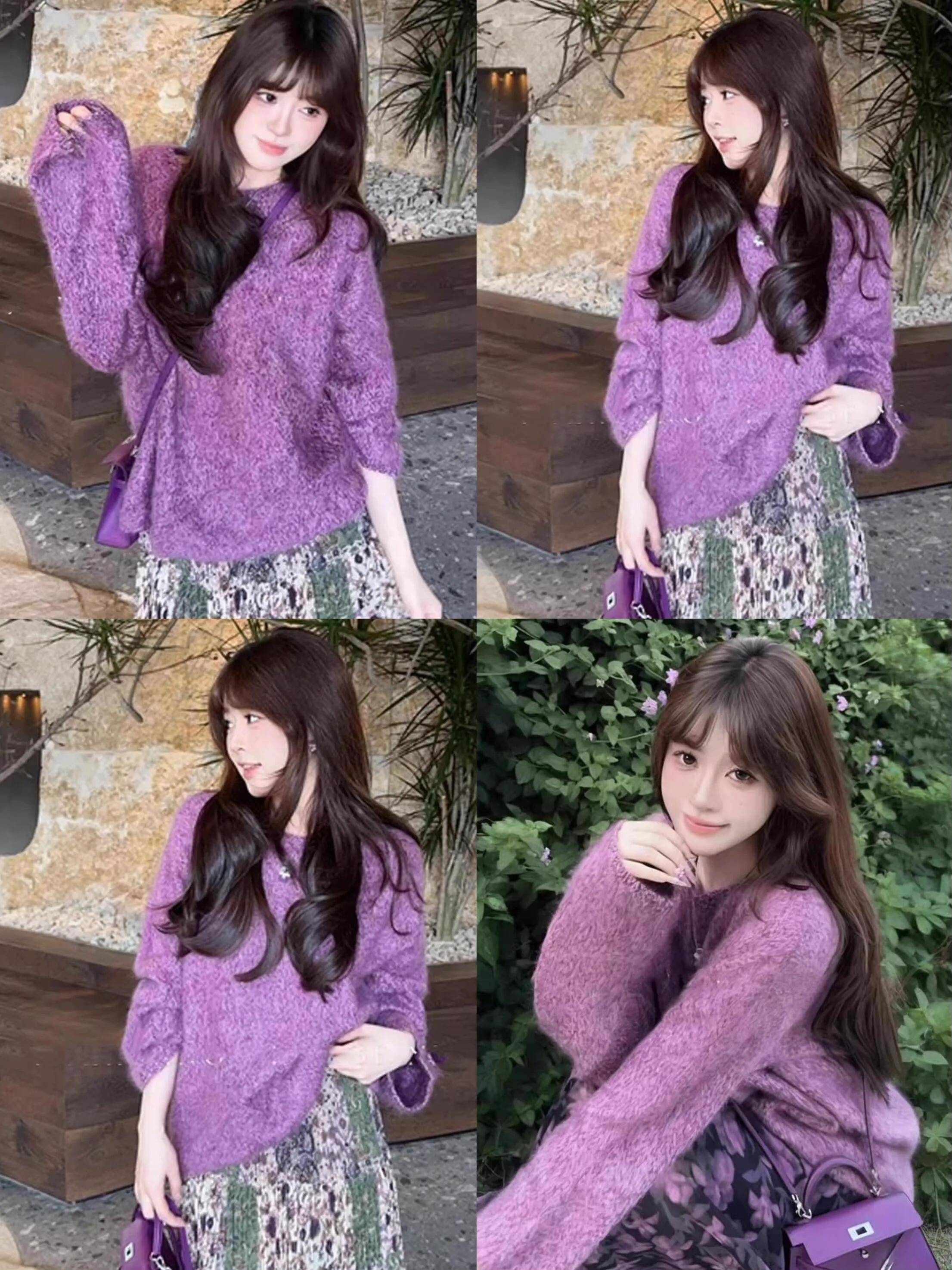 紫色毛衣暴击!温柔朦胧又神秘吸睛!
